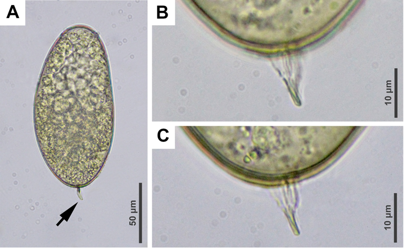 Рис. Наличие «хвостика» – придатка на одном из полюсов яйца печёночного сосальщика Fasciola hepatica.