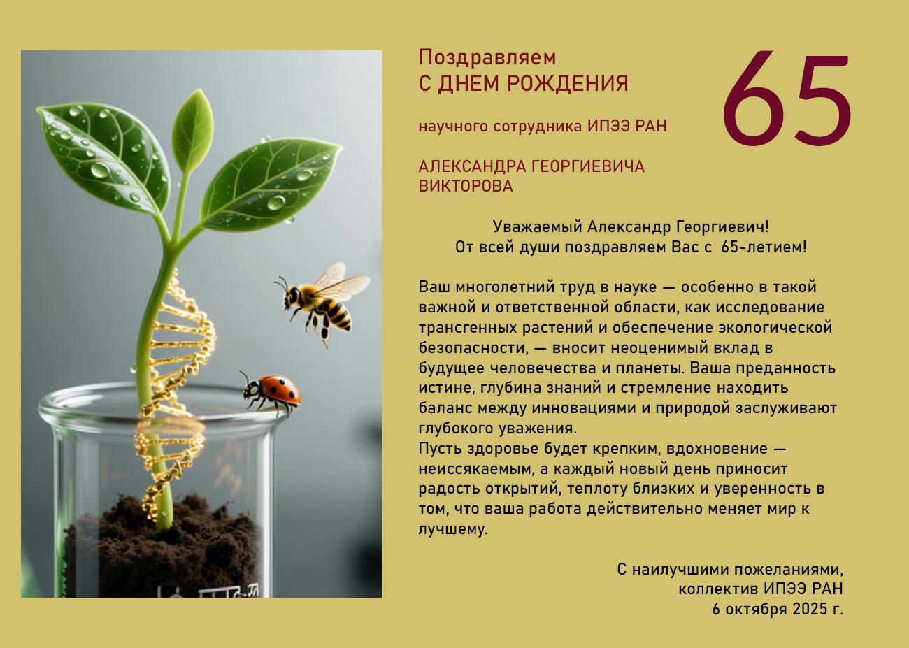Коллектив ИПЭЭ РАН от всей души поздравляет Александра Георгиевича с 65-летием! Желаем крепкого здоровья, долголетия, неиссякаемой энергии и успехов в научной деятельности!