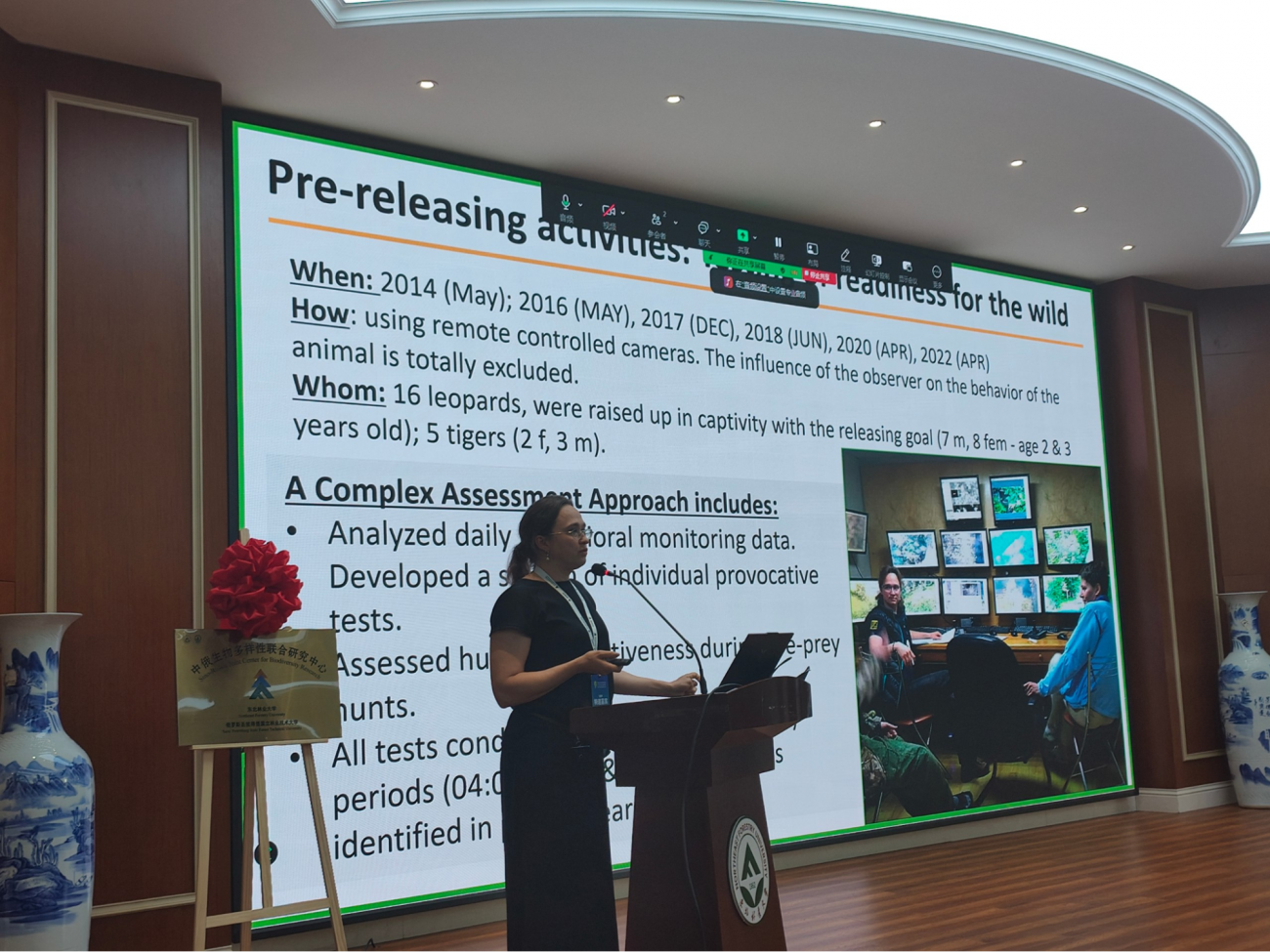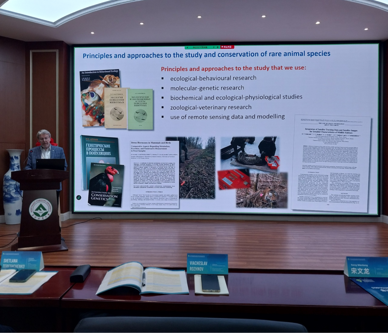 Поездка включала два ключевых направления. Первым стало участие в Первом Российско-Китайском международном симпозиуме по науке и сохранению биоразнообразия, который прошел 3–5 сентября в Северо-Восточном лесном университете (г. Харбин). Академик РАН В.В. Рожнов выступил с пленарным докладом, посвященным работе по сохранению леопарда в России. На секции, посвященной сохранению биоразнообразия, с докладами выступили И.П. Котлов и А.А. Ячменникова, которая также была модератором этой секции.