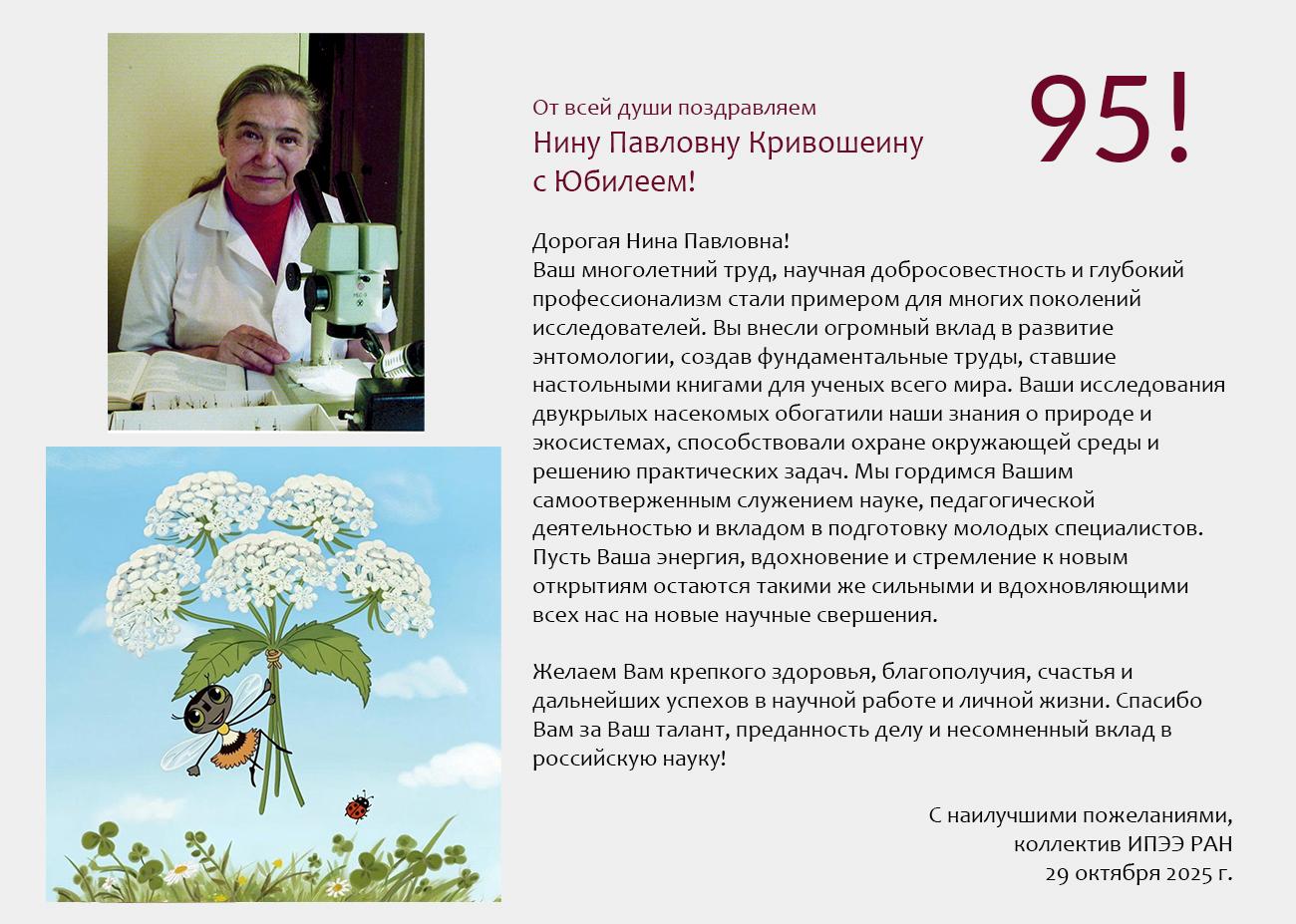 Дирекция и коллектив Института проблем экологии и эволюции им. А.Н.Северцова РАН от всей души поздравляют Вас с юбилеем!