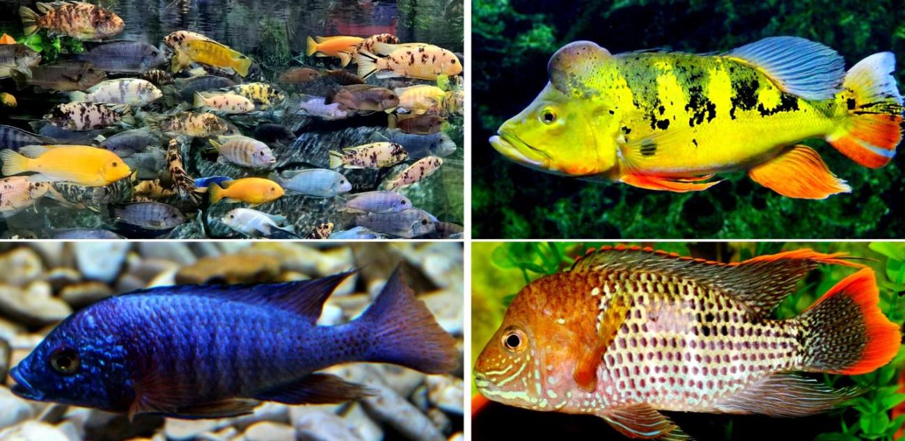 Рис. 1. Примеры пигментных рисунков африканских цихлид (слева) и неотропических цихлид (справа) (фото: Денис Праздников)