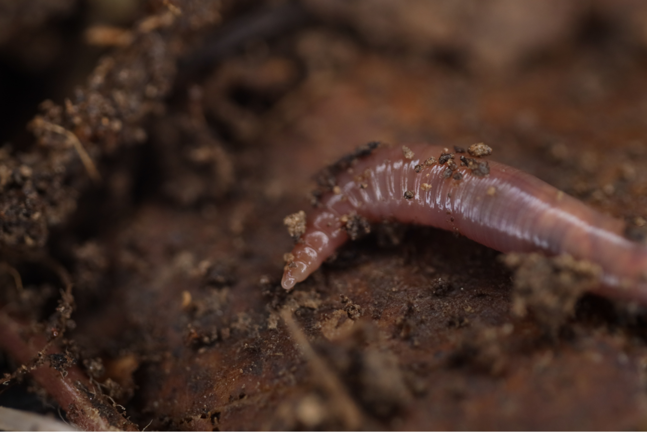 Дождевой червь из проб, отобранных в ненарушенных лесах. В лесах, подверженных рекреационной нагрузке, дождевые черви не были выявлены. Фото Д.И. Коробушкина