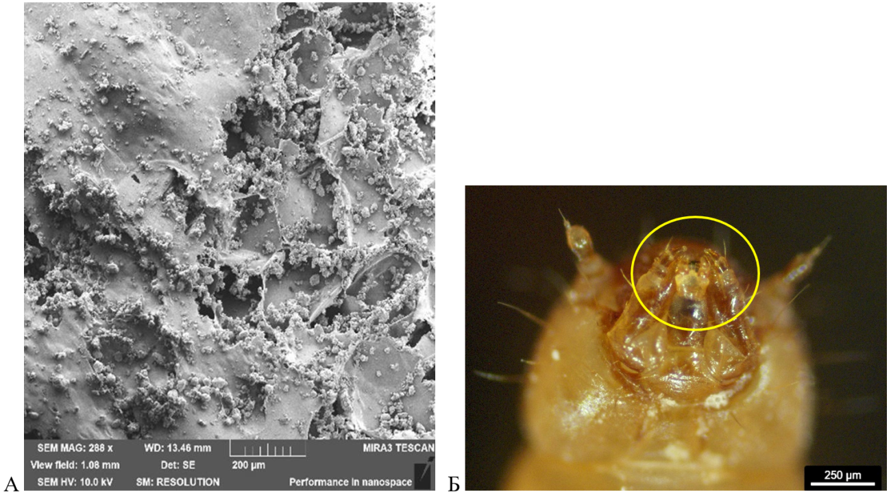 Использование полистирола личинки U. dermestoides связано с доступностью поверхности пластика для ротового аппарата личинок. Регистрируемые повреждения ПС соотносятся с размерами грызущего аппарата личинок U. dermestoides.