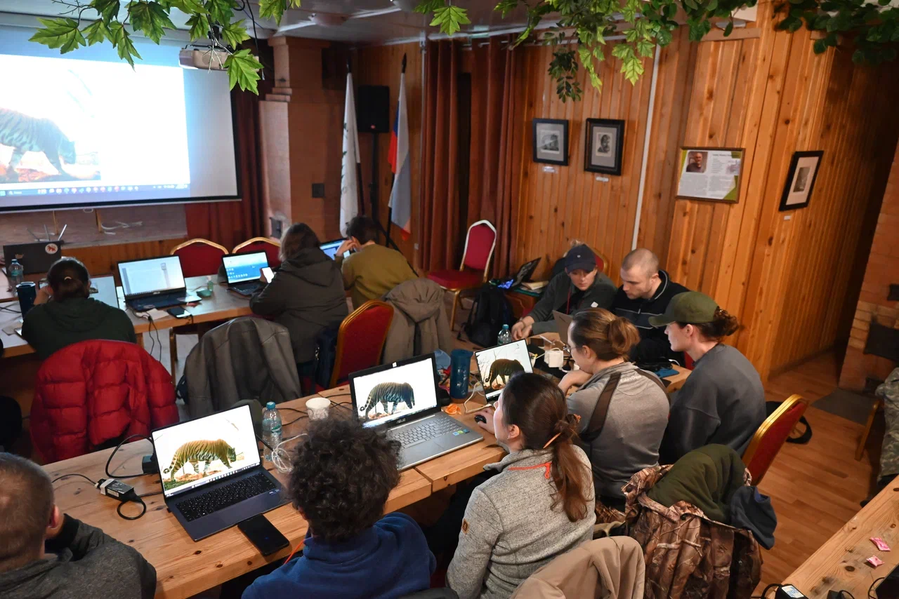 В течение шести дней учёные осваивали как теорию, так и практику современного фотомониторинга. Программа включала следующие ключевые темы: Оценка численности животных: слушатели научились рассчитывать плотность населения нераспознаваемых видов с помощью методов REM (модель случайных столкновений) и TTE (модель времени до событий), а для индивидуально распознаваемых видов (например, тигров) — с помощью анализа SECR в программе R. Работа с дизайном сети и ГИС: участникам показали, как создавать сети фотомониторинга в программе QGIS — от простых вариантов до автоматической генерации локаций с учётом различных ограничений. Калибровка камер и обработка данных: в рамках освоения метода REM прошли мастер-классы по калибровке локаций с помощью калибровочного шеста, построения их фотограмметрических моделей в программе AnimalTracker, а также по обработке изображений в программе Timelapse (с учётом особенностей тегирования для REM). Анализ данных в среде R: были подробно разобраны скрипты для REM, односезонного анализа заселенности (на примере дальневосточного лесного кота) и возможности основного модуля CAMMON для расчёта индексов обилия, видового разнообразия, суточной и сезонной активности, а также оценки влияния человека на млекопитающих. Распознавание отдельных особей: участники узнали, как идентифицировать тигров и леопардов в программе ExtractCompare, а также познакомились с возможностями программы HotSpotter для распознавания рысей и кавказских лесных котов.